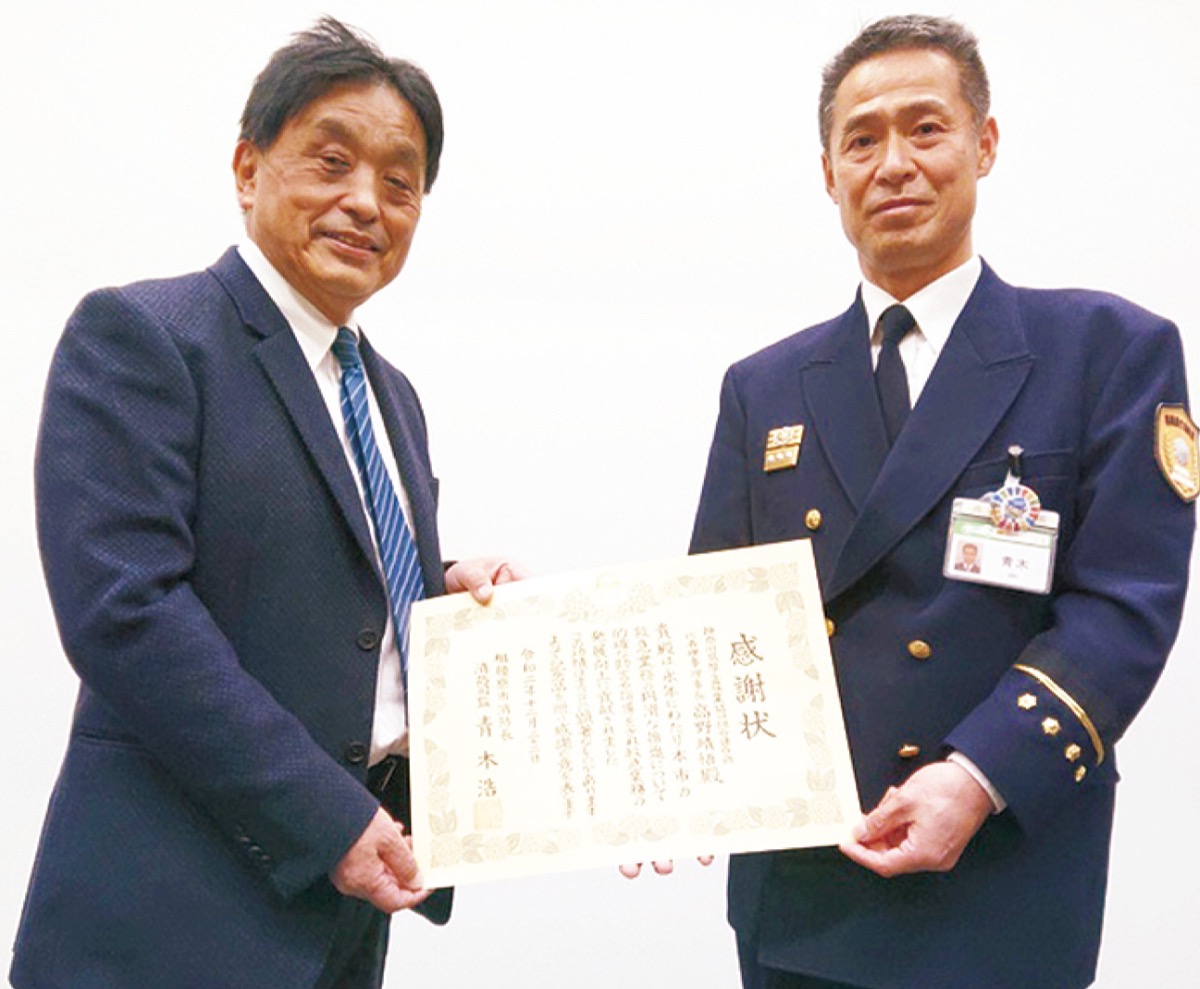 市の救急業務の円滑な推進に貢献したとして先ごろ、相模原協同病院の名誉院長でもありJA神奈川県厚生連代表理事長でもある高野靖悟さんが市消防局から感謝状を授与された。