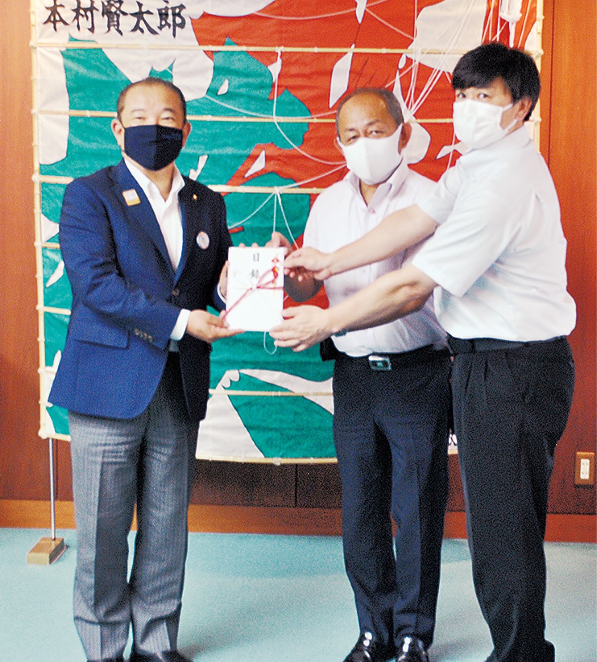 14日は大川会長と川島博之幹事長が本村賢太郎市長を訪問。大川会長は「寄附は色々考慮したが、会員と話し合い、コロナ禍で頑張っている人たちのために使って頂くのが一番と決めた」と経緯を説明。本村市長は「大変有難く思う。コロナ対策で働く医療従事者や医療設備の充実などに使わさせていただきたい」と話した。