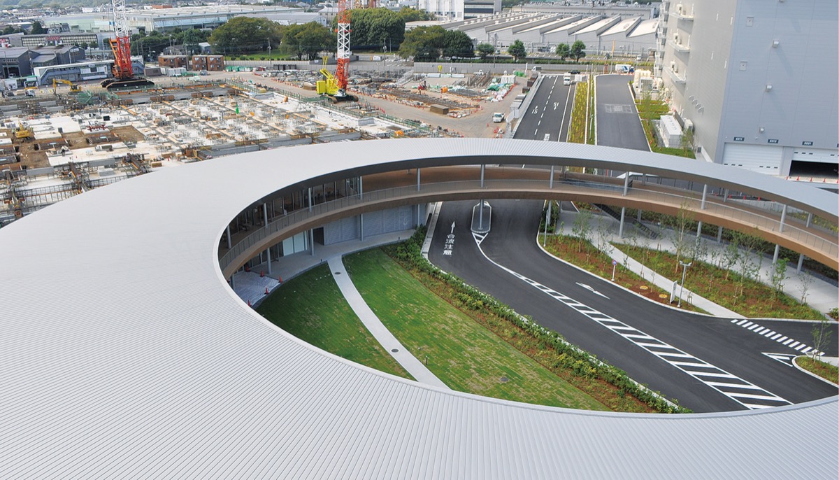 今回竣工された、「GLP ALFALINK 相模原1」はその1棟目。地上5階(一部6階建て)で、敷地内には地域住民も利用することができる共用棟「リング」が開設され、合わせて約33万平方メートルの延床面積を有する。