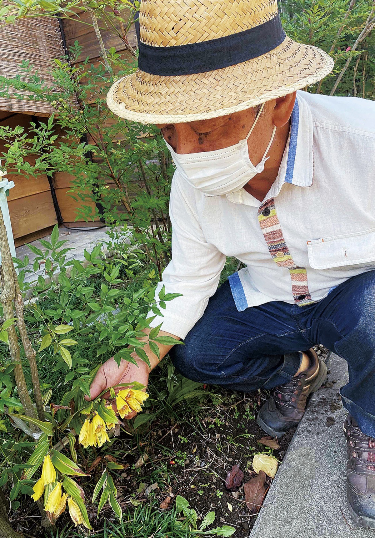 自宅の庭で花菖蒲など多数植物を育てている清水さんが、サガミジョウロウホトトギスの花を咲かせたのは初めて。同花は沢近くの崖などに垂れ下がって咲くことが多く、十分な湿度が生育の鍵となる。10年ほど前に一度苗を購入しチャレンジしたことがあったが、その時はうまく花が付かなかった。苗は売りに出される頻度が低く、前回と同じ専門業者から再び購入できたのが一昨年のこと。昨年は鉢で育てたため湿度が十分でなく花が咲かなかったが、今年はあえて湿度の高い北側の軒下に植栽。9月29日に10個ほど開花したのを発見した。