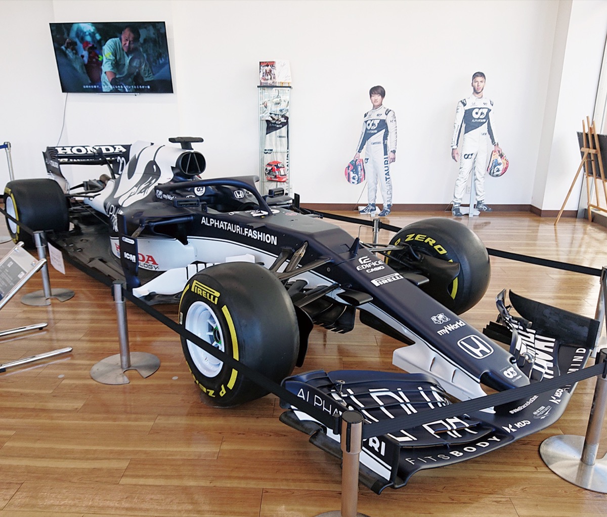 店内ではアルファタウリ・ホンダF1マシンやレーシングスーツ、ヘルメットの実物をお披露目。都内にあるホンダウエルカムプラザ青山で展示されていた同マシンを区内で見られるチャンスだ。