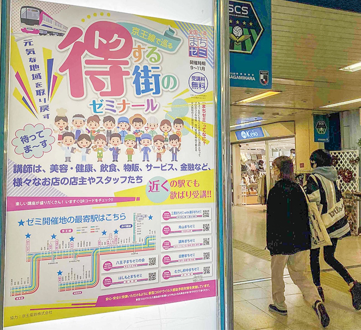 同商店街によると、まちゼミのポスターが京王線・井の頭線全駅に掲示されるのは全国初となる試みだという。