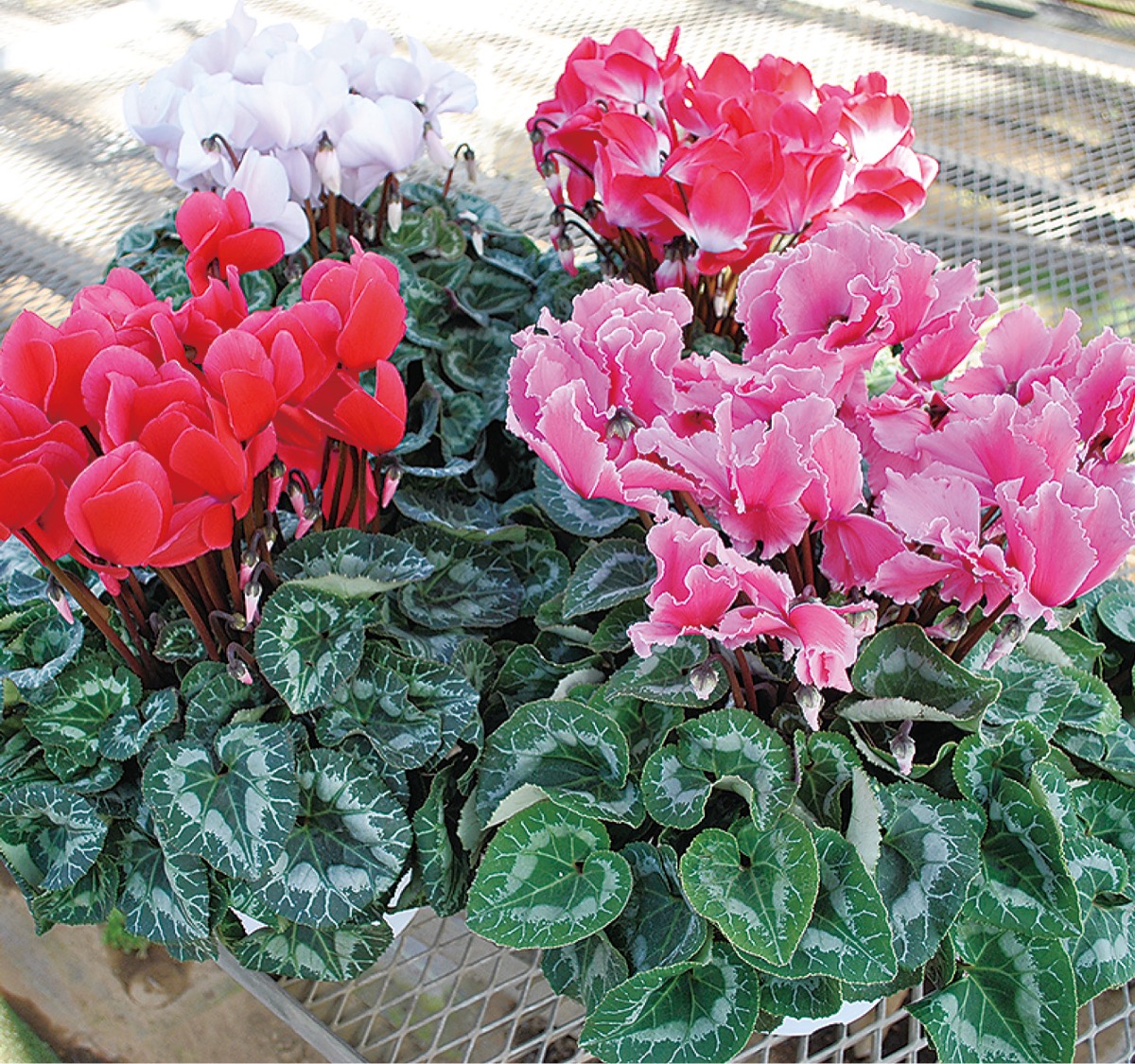 良質な株を直売価格で提供する『島村ファーム』はシクラメンの販売を開始した。赤、パープル、白、ピンク等10数種の色が楽しめ、生産直売ならではの品質が魅力。
