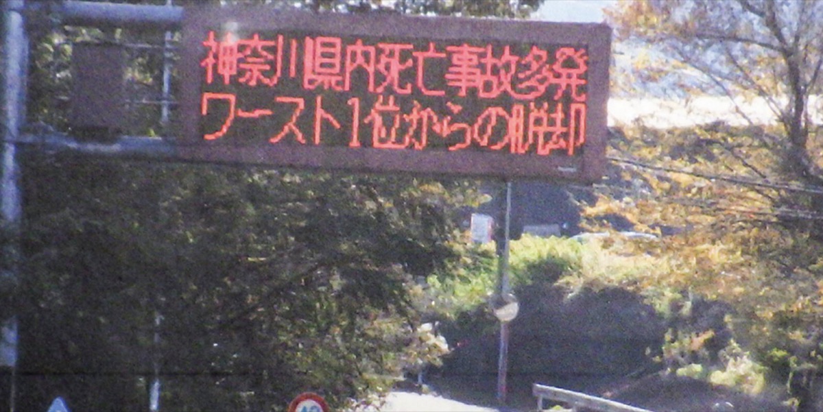 津久井警察署(田上数仁署長)は、さがみ湖リゾートプレジャーフォレストやパチンコ&スロットSHIROYAMAなどの企業が所有するデジタルサイネージ看板や、道路電光掲示板を利用し、「交通死亡事故全国ワースト1位からの脱却」を訴えている。