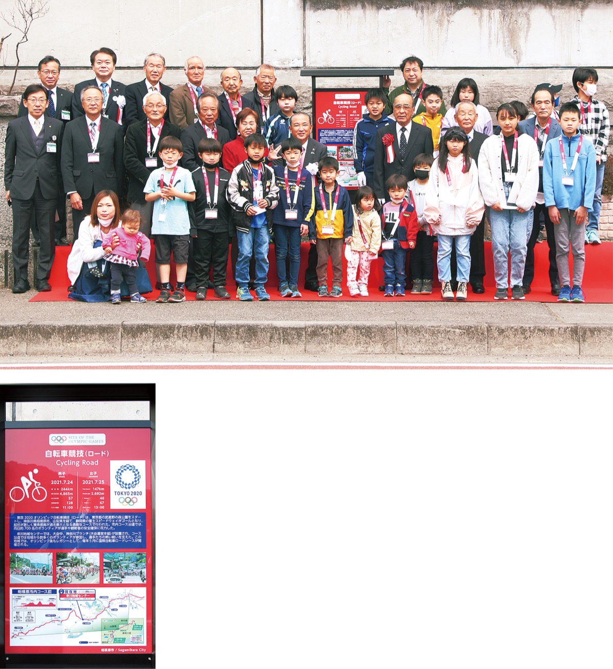 当日は、地域の子どもたちも招待され、大会のレガシー展示や大型スクリーンでのオリンピック自転車ロードレースの映像の放映などが行われた後、除幕された。