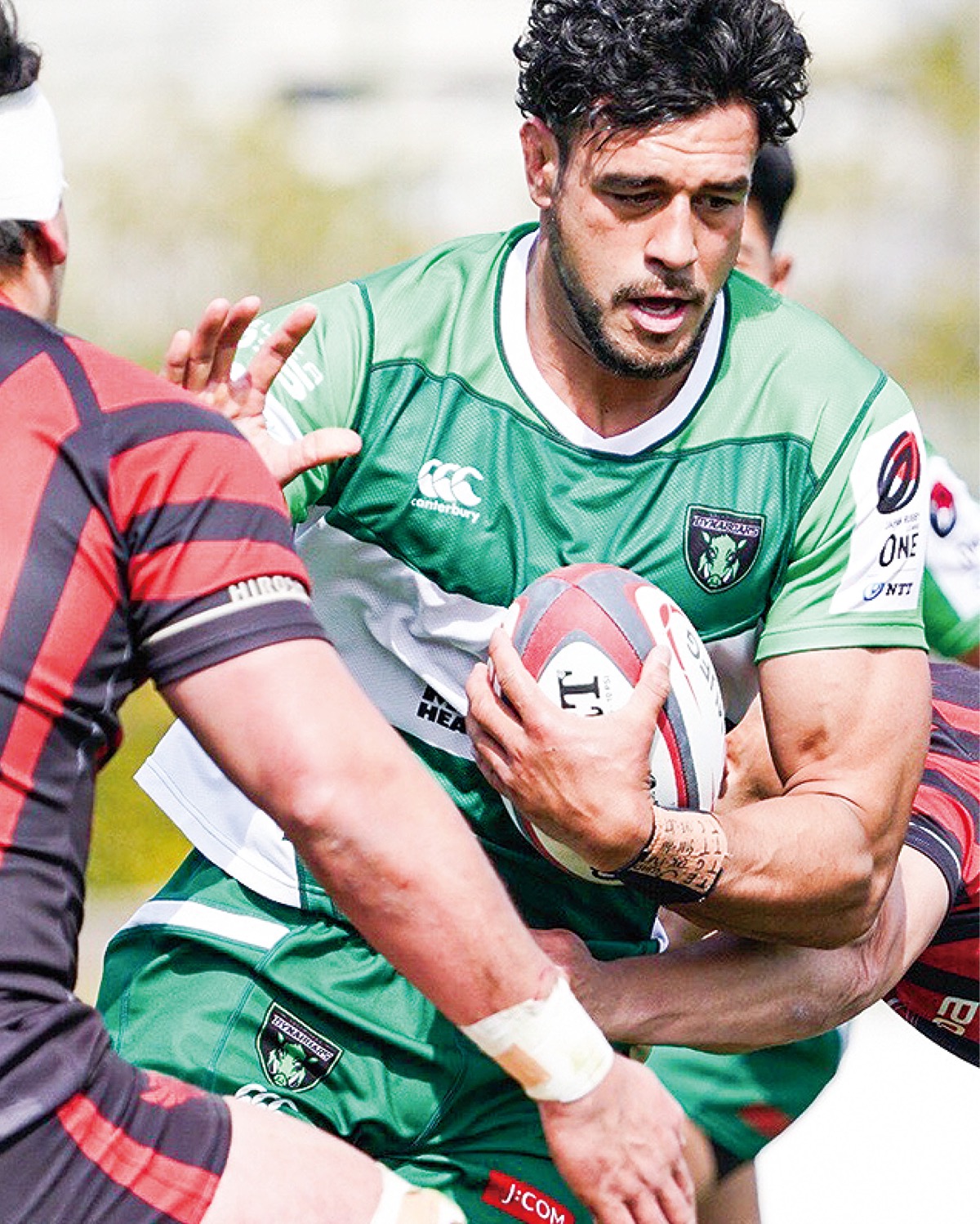 後半14分、CTB奈良望のトライ、FB(フルバック)石田一貴のゴールで勢いに乗った三菱重工はその後4トライの猛攻。59対14と大勝し、力の違いを見せつけた。
