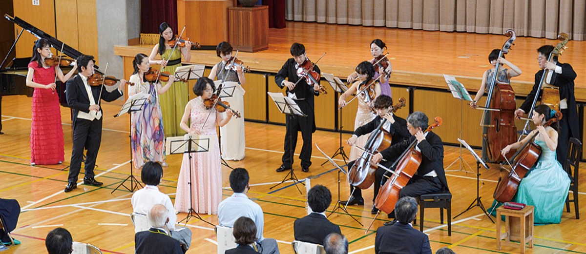 式典では、校旗・校章旗が返納され、ソプラノ歌手・横井香奈さんによる両校の校歌独唱も行われた。式典の後には、アトラクションとして、親交のあった東京フィルハーモニー交響楽団の首席チェリスト・金木博幸さんらによる記念コンサートも開催された。