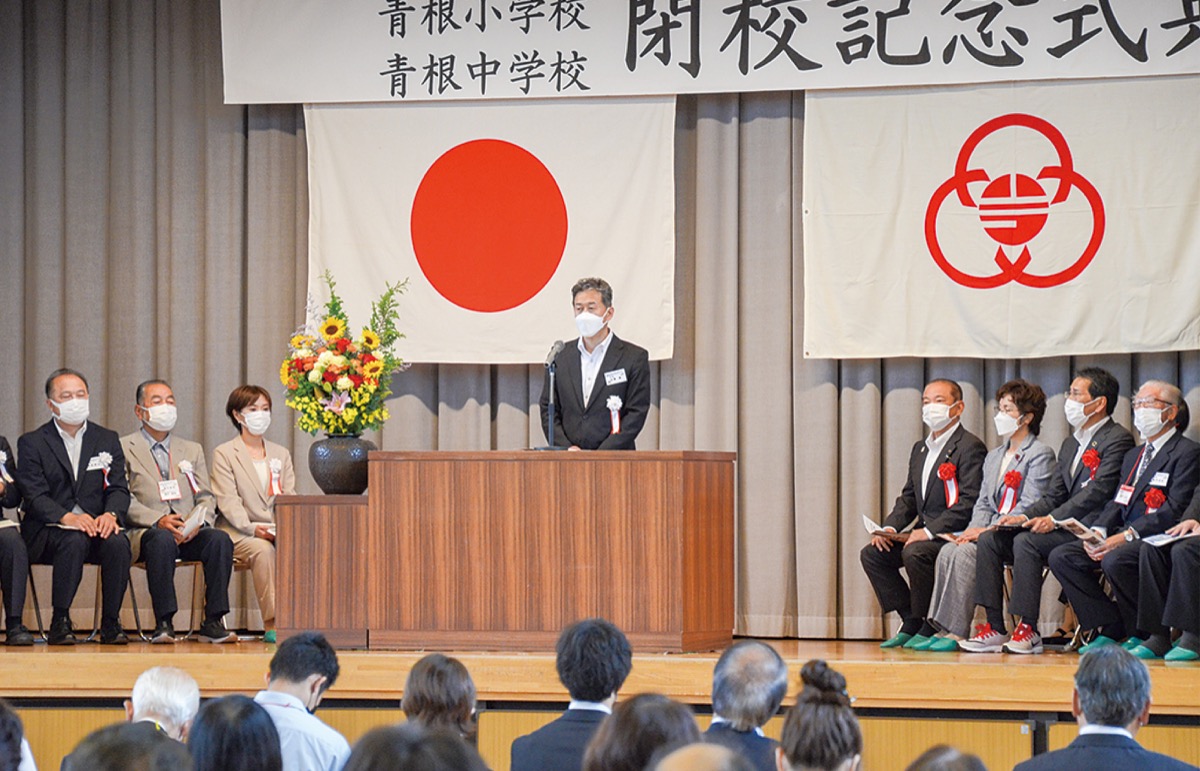 式典当日は、卒業生、教職員ら約250人が参加。主催者としてあいさつに立った閉校記念事業実行委員会の加藤健会長は、冒頭で地域や関係者のこれまでの支援に感謝を述べると、「青根小、青根中は長きにわたり先生方、地域の皆様の協力によって伝統を積み重ねてきた。現在、青根から青和学園に通っている子どもたちが、『勉強は大変だけれど、学校は楽しいよ』と笑顔で話してくれるのを見て安心している」と話した。