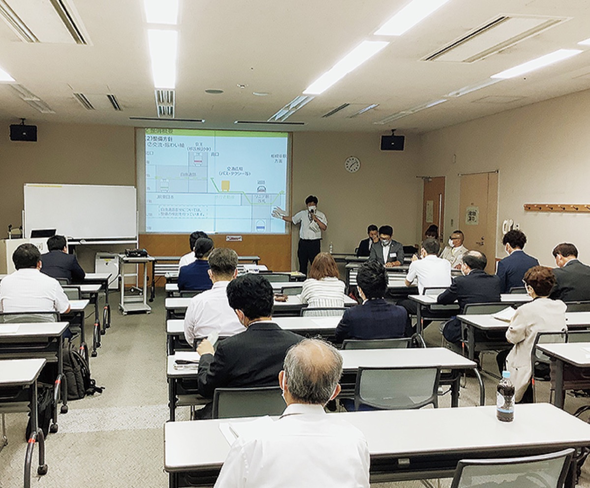 後半には相模原市によるリニア中央新幹線の計画について報告。具体的な工事内容やエリア、工事に関わる団体等の説明が行われ、参加者は真剣に耳を傾けていた。