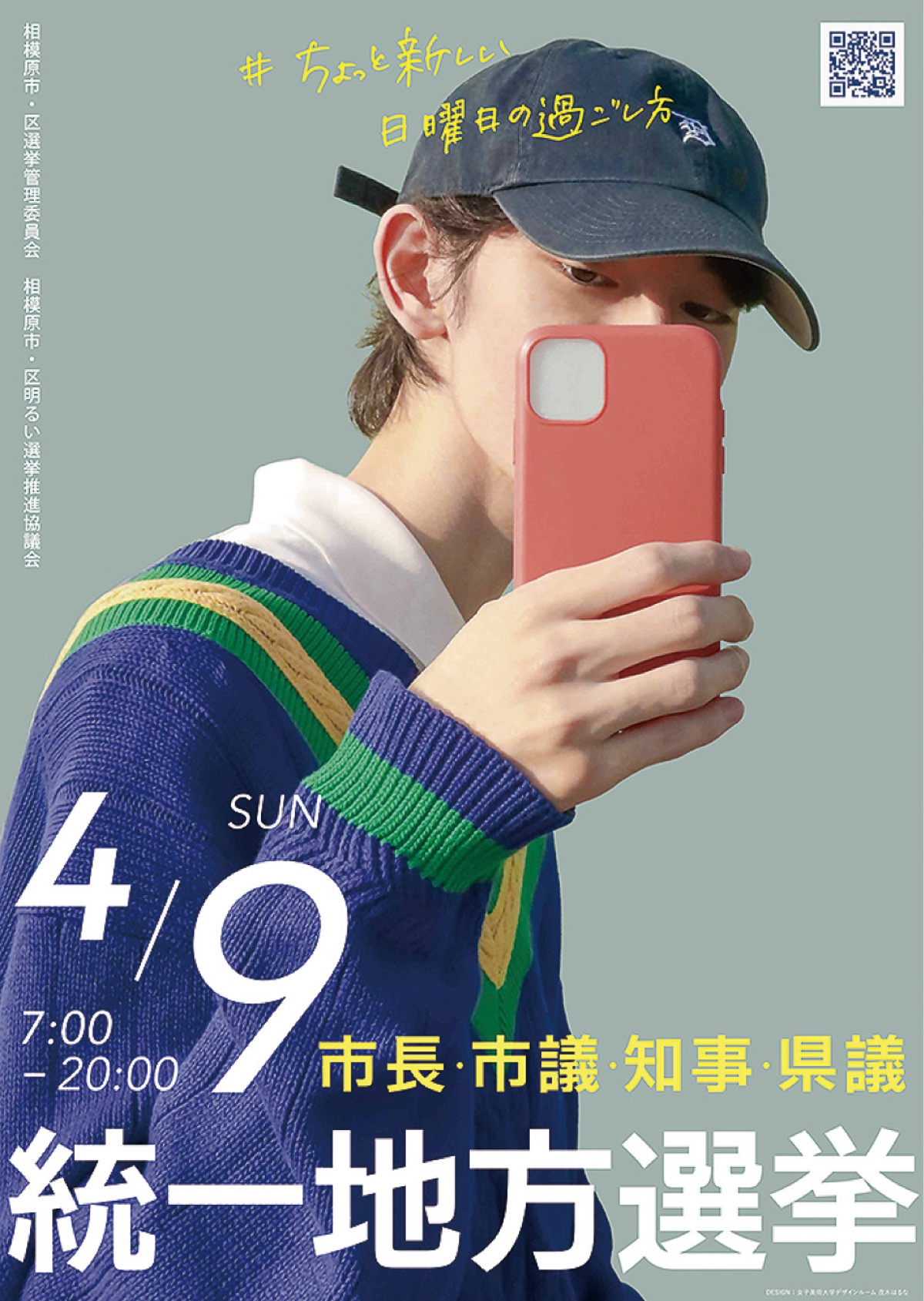市では今回、若い世代に届くよう啓発ポスターや動画を作るなどし、周知に努める。ポスターは南区の女子美術大学に制作を委託し、若者に身近な「自撮り写真」の姿に「#ちょっと新しい日曜日の過ごし方」とのメッセージを添えたもの。市内でおよそ200カ所に掲示される。動画は市内大学の学生も構成員となっている「相模原・町田大学地域コンソーシアム」に頼んだもので、市内の庁舎やコンビニなどでも放映される。