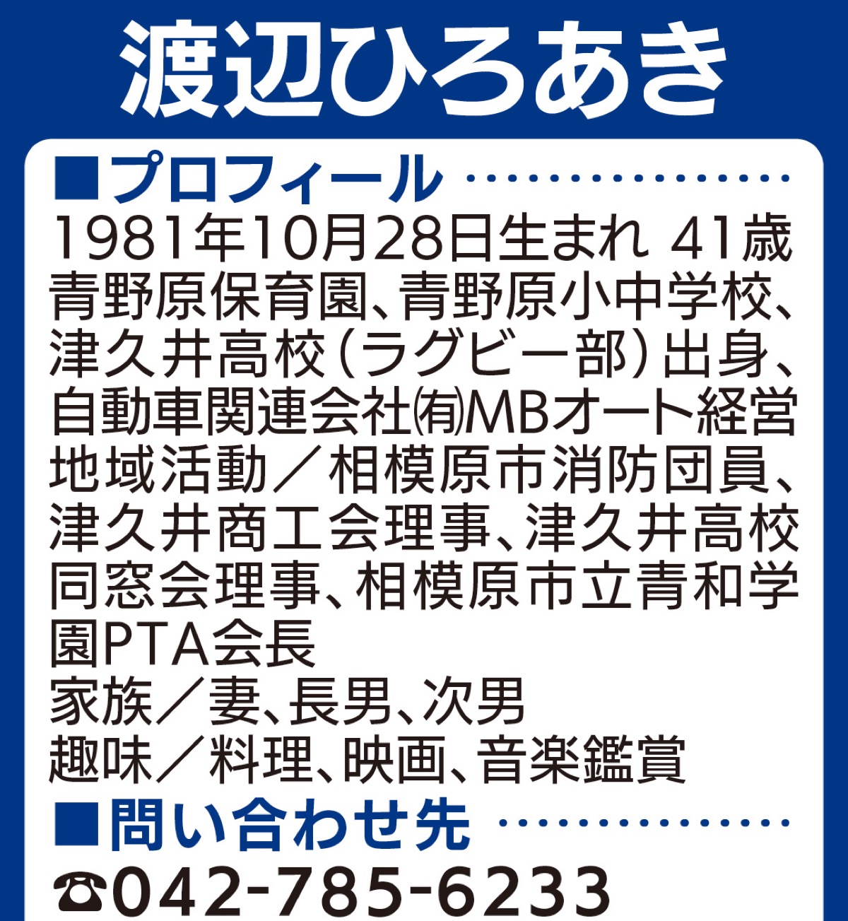 津久井青年会議所第37代理事長 渡辺ひろあき
