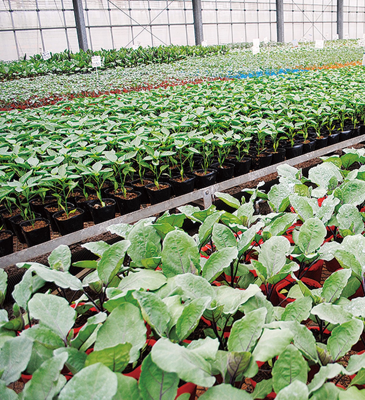 毎年高い人気を誇る野菜苗の販売を開始した島村ファーム。「良質な品質で丈夫で実りが良く、失敗しない」と評判の苗は、プロの農家がまとめ買いに訪れるほど。ナス、トマト、キュウリ、ピーマン(130円〜)を始め、キャベツ、レタス(70円)等種類も豊富。接木苗も各種有り。