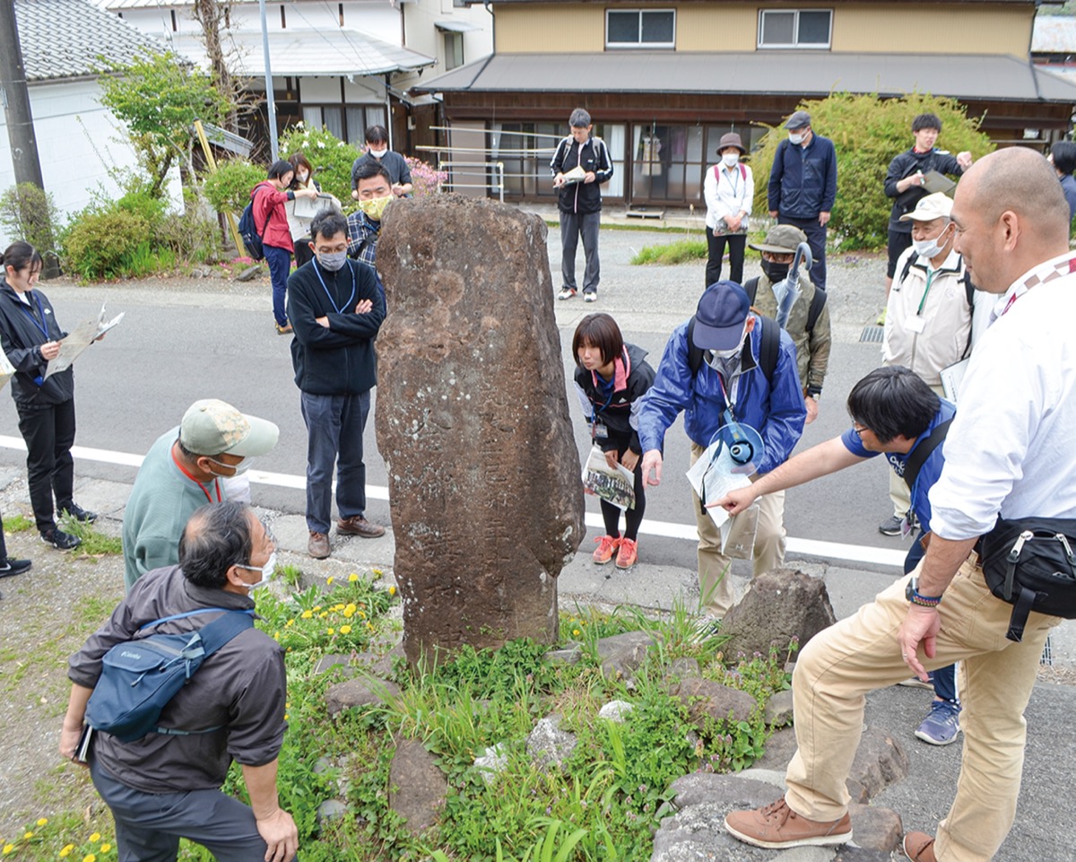 青和学園の教職員らが4月12日、青野原地区の歴史や文化について学ぶ地域研修を行った。異動などにより、地元に精通した職員が減ってしまったことに危機感を感じた榎本泰行校長が、「職員にもっと地元を知ってほしい」と企画。相模原市公文書館学芸員の井上泰さんや、教職員OBらで構成する青和学園サポーターズクラブのメンバーらの協力で実現した。