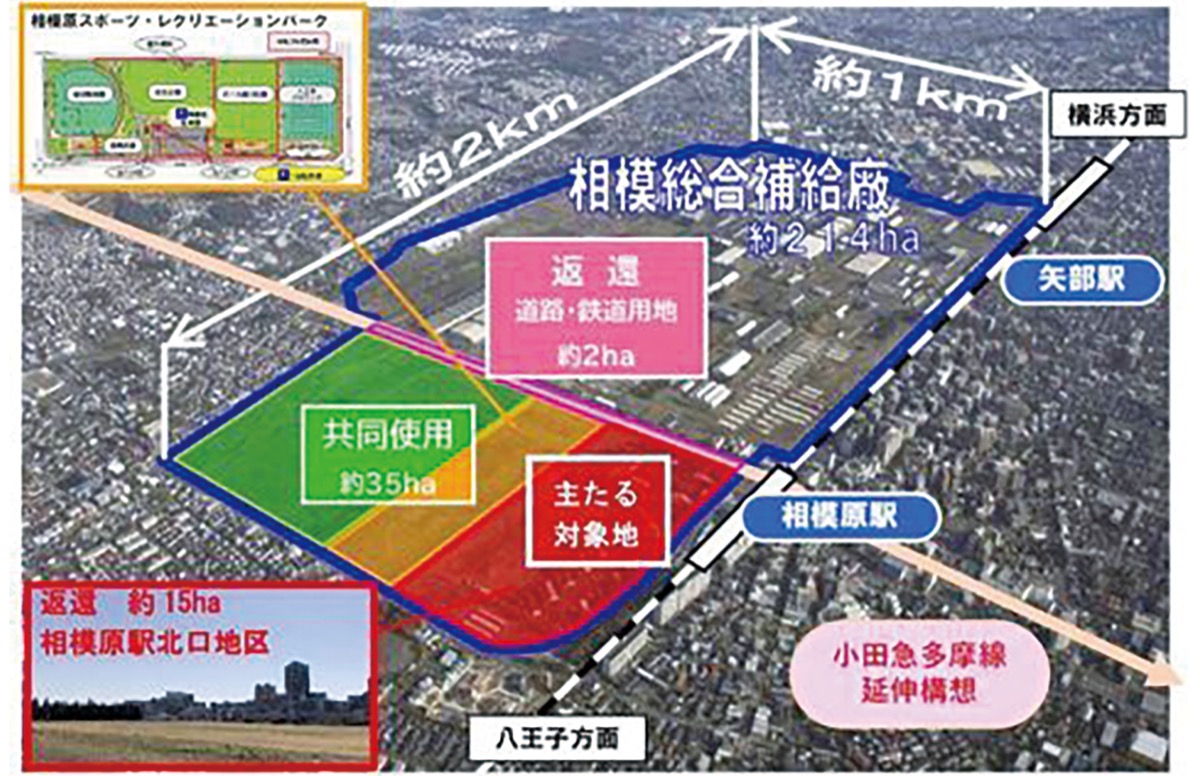 同地区は、相模原駅北側に広がる米軍相模総合補給廠約214haの一部で、14年に国に返還された約17haのうち、道路・鉄道用地を除いた約15ha。用地は国の所有となる。