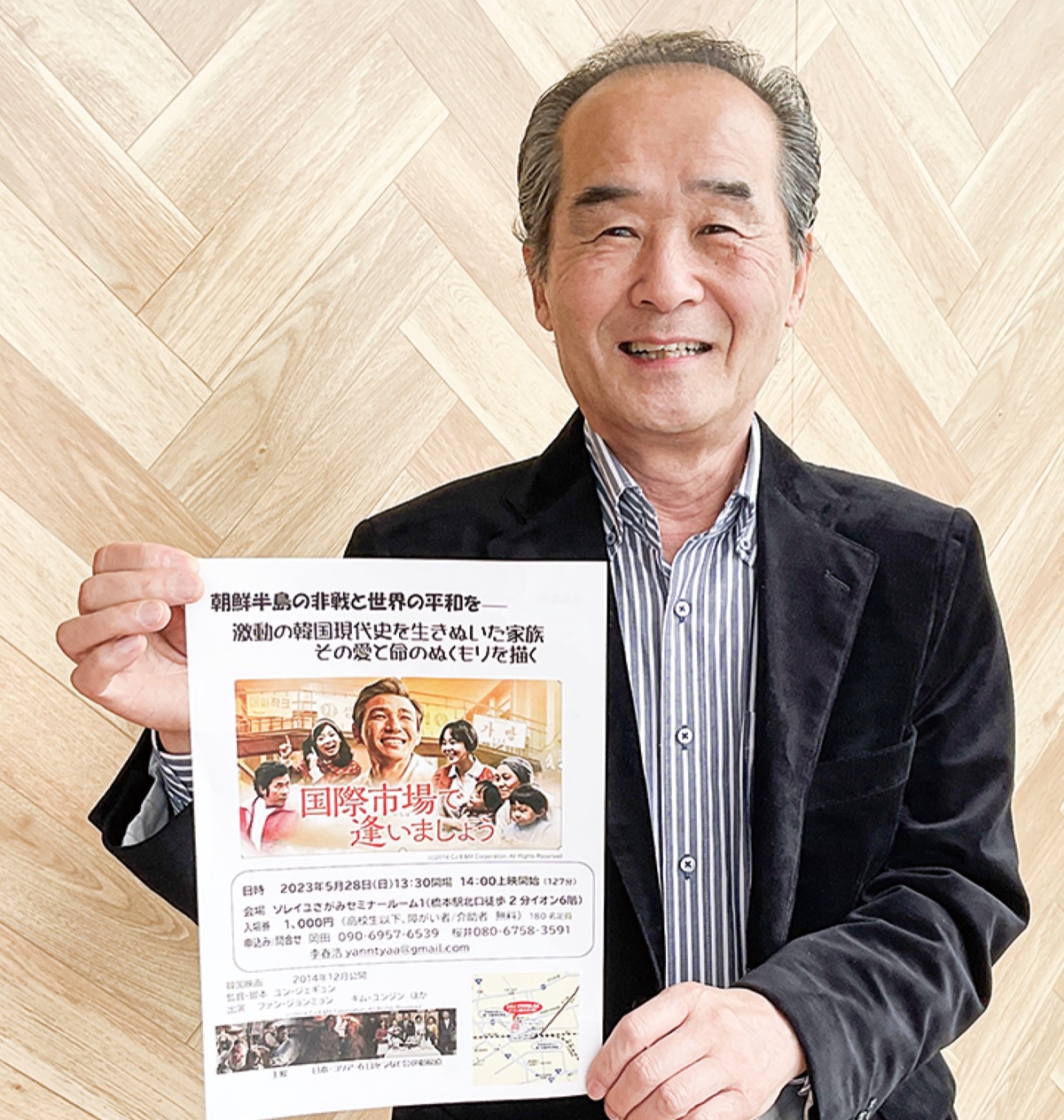 当日は2014年に韓国で公開された映画「国際市場で逢いましょう」(ユン・ジェギュン監督)を上映。同作は激動の韓国現代史を生き抜いた家族の愛と命のぬくもりを描いた作品。李代表は上映会を前に「日本でも上映された作品だが、まだ見ていない人もたくさんいると思う。 近くにある国を知り友好親善への思いが高まればうれしい。 ぜひ多くの人に見てもらいたい」と話す。