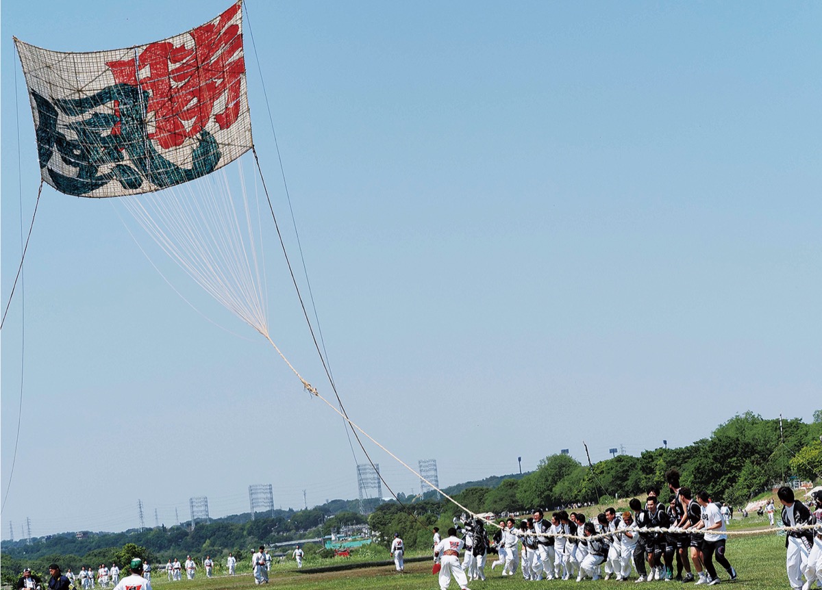 相模原市の無形民俗文化財に指定されている伝統行事「相模の大凧まつり」が5月4日と5日、相模川新磯地区河川敷で4年ぶりに行われた。新戸、勝坂、下磯部、上磯部の全4会場で凧が青空を舞った。