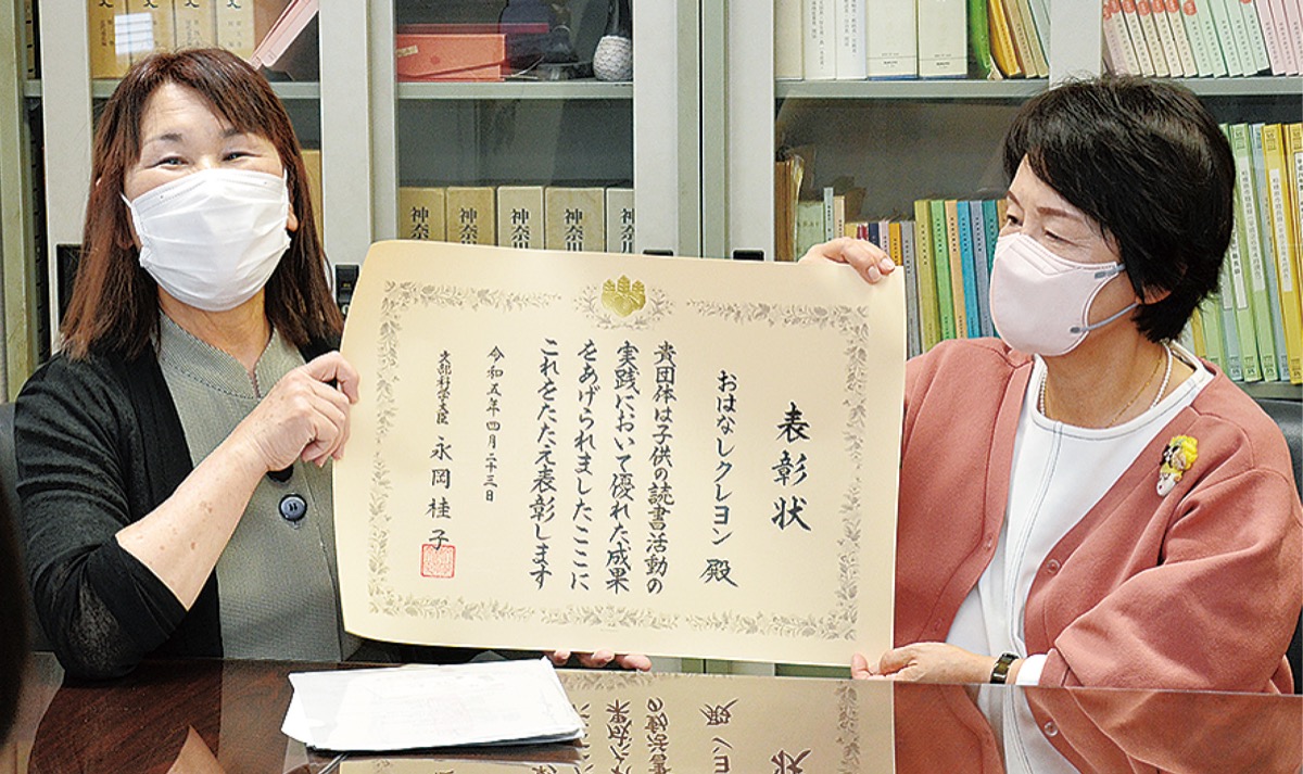 相模湖地区を中心に活動する読み聞かせのボランティア団体「おはなしクレヨン」(根仁美代表)が令和5年度子供の読書活動優秀実践団体に対する文部科学大臣表彰をこのほど受賞した。根代表は「好きでやっている活動でこのような賞をいただけてうれしく思う」と話した。
