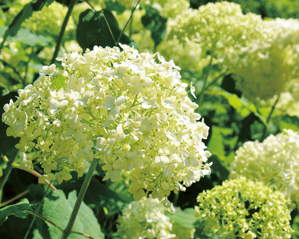 200種類、1万株のアジサイが植栽されている同公園。日本人には馴染み深いガクアジサイや、真っ白い花を咲かせるアメリカ原産のアナベルを観賞しようと、毎年多くの人が訪れる。一般的なアジサイより、遅めに咲き始めるというアナベルは、まだ咲き始めといったところ(6月3日現在)。「通常、6月下旬に開花し始めますが、今年は少し早い6月中旬頃になりそう」と公園管理担当者は話す。
