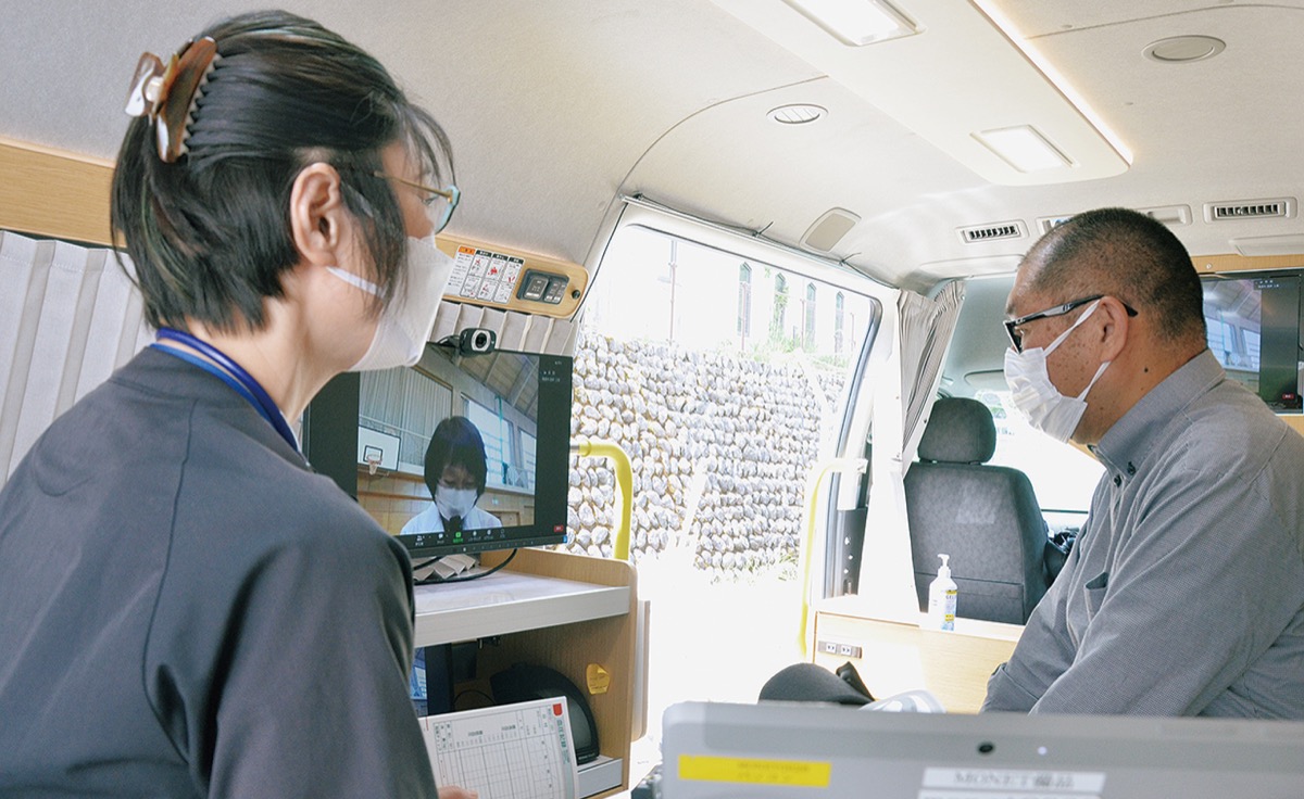 モバイルクリニック事業とは、自宅に移動診療車が訪問し、乗車して来る看護師のサポートのもと、車内でオンライン診療を受けられるというもの。