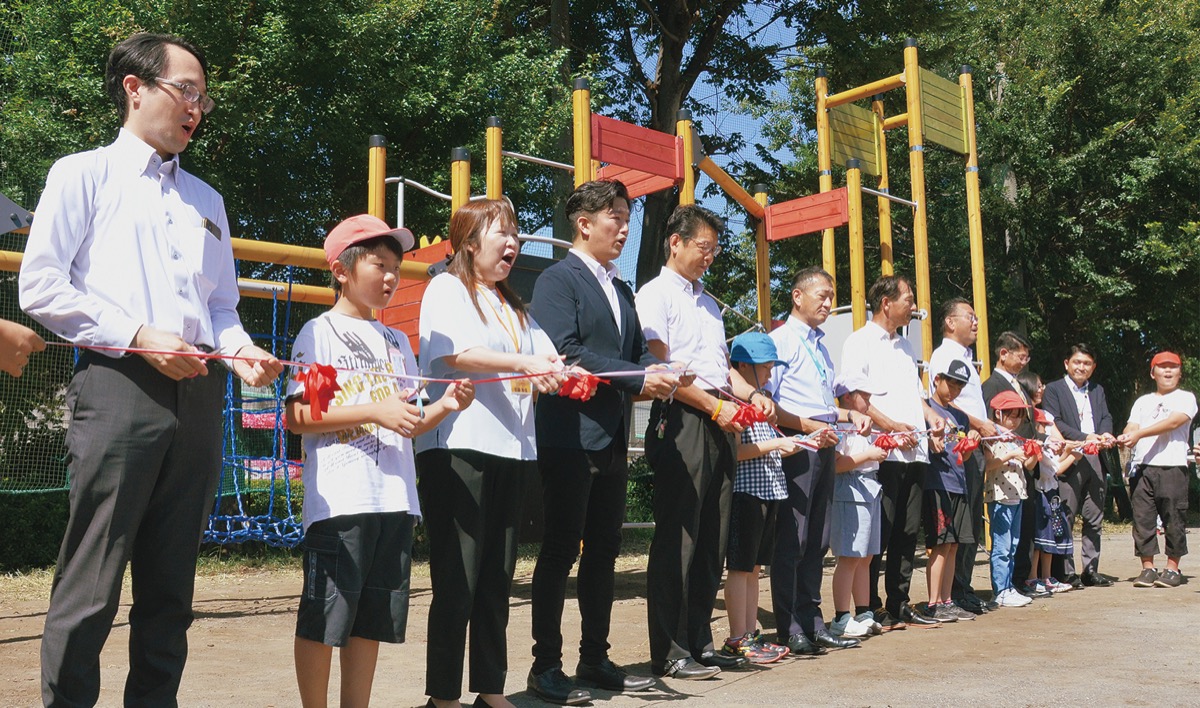 昨年から復活へ向け取り組んできた橋本小学校のアスレチックがこのほど完成した。9月1日には設置を支援した企業ら関係者を招待し、アスレチック開幕セレモニーが行われた。