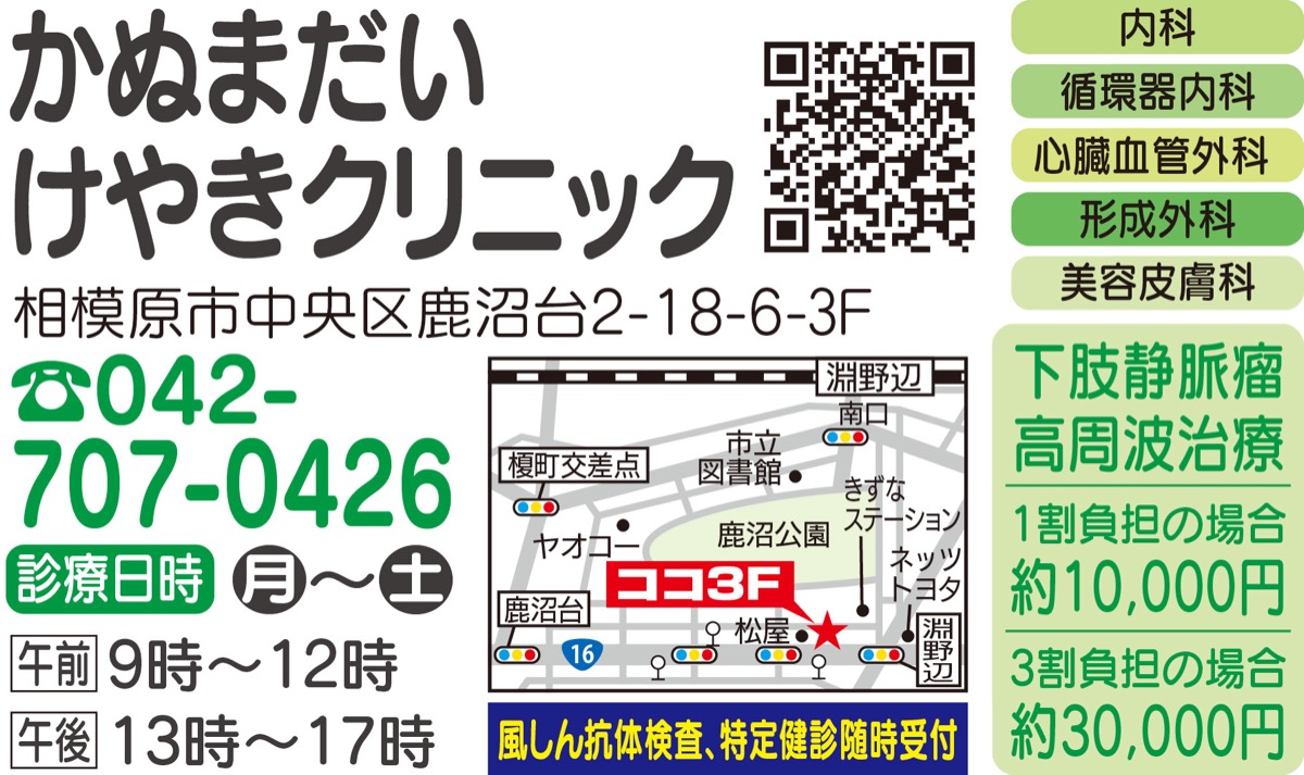 「下肢静脈瘤(かしじょうみゃくりゅう)」は脚のむくみに隠れる疾患で、日本人の約1割が潜在患者ともいわれる。中央区鹿沼台の『かぬまだいけやきクリニック』では、この下肢静脈瘤の早期発見・治療に努めている。