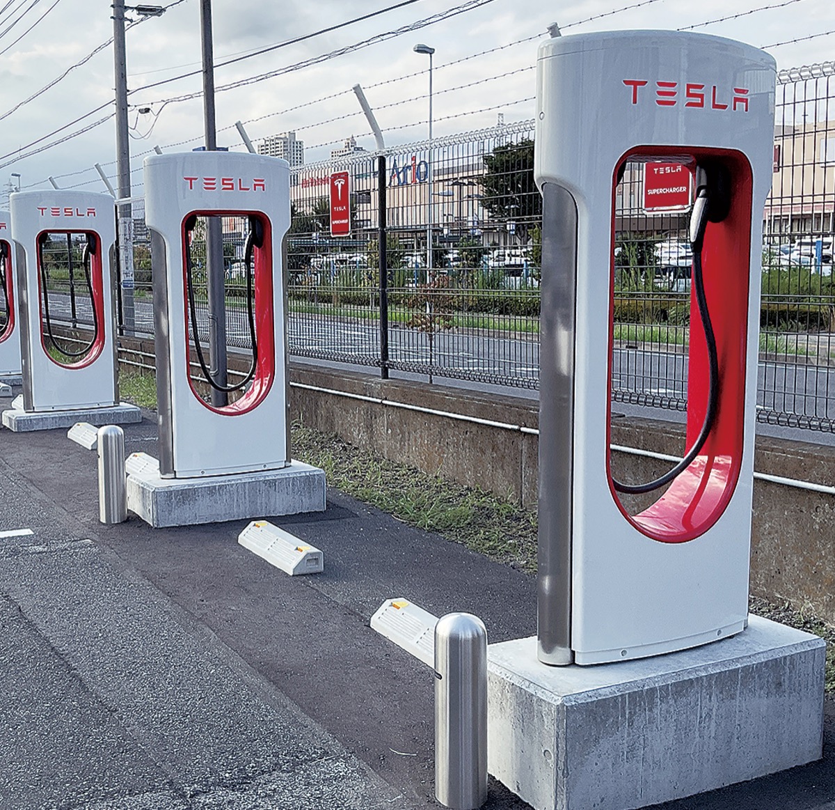 アリオ橋本の南側、同社工場の敷地内の一角にできたステーション。設置されたのはテスラ車専用高速充電器(スーパーチャージャー)が4基と普通充電器(ウォールコネクター)が3基。スーパーチャージャーは出力250kW、約30分でフル充電できるテスラ車専用の充電設備。一方のウォールコネクターは、全車種のEV車に対応し出力は8kW。1時間に10%ほどの充電ができる。ステーションは24時間開放され、自由に利用することが可能。使用料はかからず電気料金のみとなる。