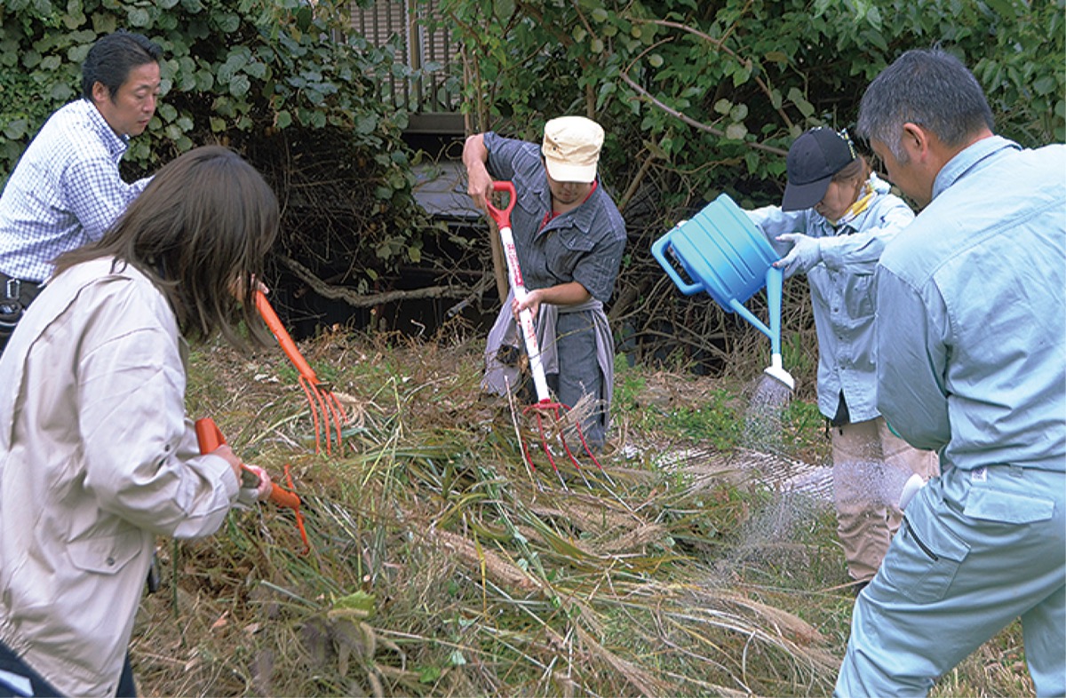 9月下旬に青根地区で実施されたのは、ヤマビルの生息数の調査と、効果があると言われる食酢の実験。シカやイノシシが確認されている畑を除草して草山を作り、そこにヤマビルを誘導、数日後、草山に10%ほどに薄めた食酢をかけ、その効果や死滅数を調べるというもの。草山に一定数のヤマビルが目視で確認された後、実験を開始。残念ながら、死滅数は草と死骸の判別がしにくく計れなかったが、食酢をかけた草山からは生体は確認されなかった。今後、さらに実験を繰り返し、検証していくという。