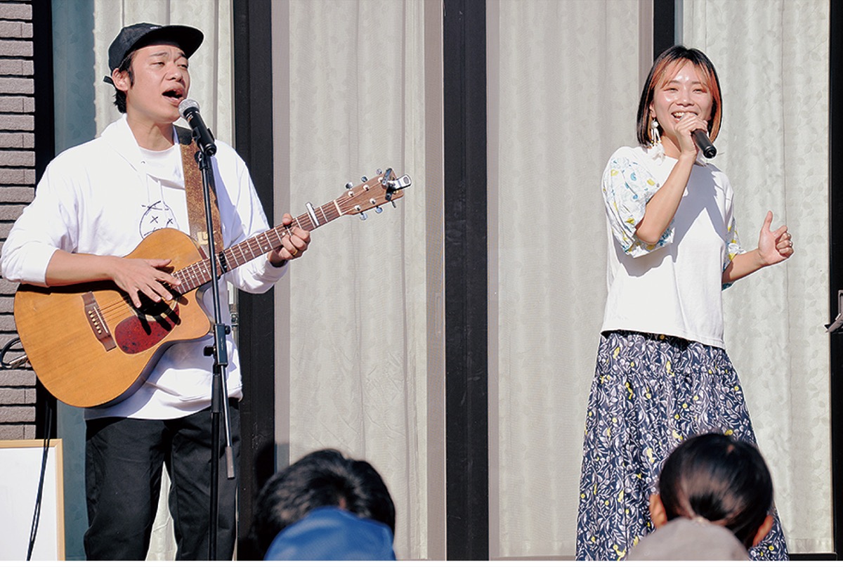 同校のイメージソングを作ったことをきっかけに記念イベントに登場した相模原市出身デュオのウタイスト。当日は2部制で、第1部には約40人が来場。「歩いて帰ろう」「ロビンソン」などのカバー曲、オリジナル曲を9曲披露した。ウタイストの石河美穂さん、瀧澤克成さんは「暑かったけれど、のびのび歌うことができて良かった。とてもやりやすかった」と振り返ると、同校の内田雅仁社長は「地域の方に恩返しの思いで企画した。楽しんでもらえているようで良かった」と話した。