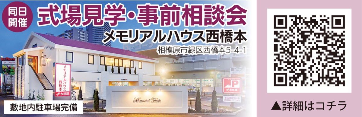 また、会場すぐのメモリアルハウス西橋本でも同日にハウスエンディング®式場の見学会・事前相続会を開催する。