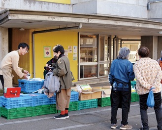 団地入居者の買い物の利便性向上と入居者同士のコミュニティーの活性化を図るため市営上九沢団地で11月22日、同団地の管理組合主体による野菜の移動販売が始まった。今後は週2回、団地内の広場で定期的に販売を実施する。