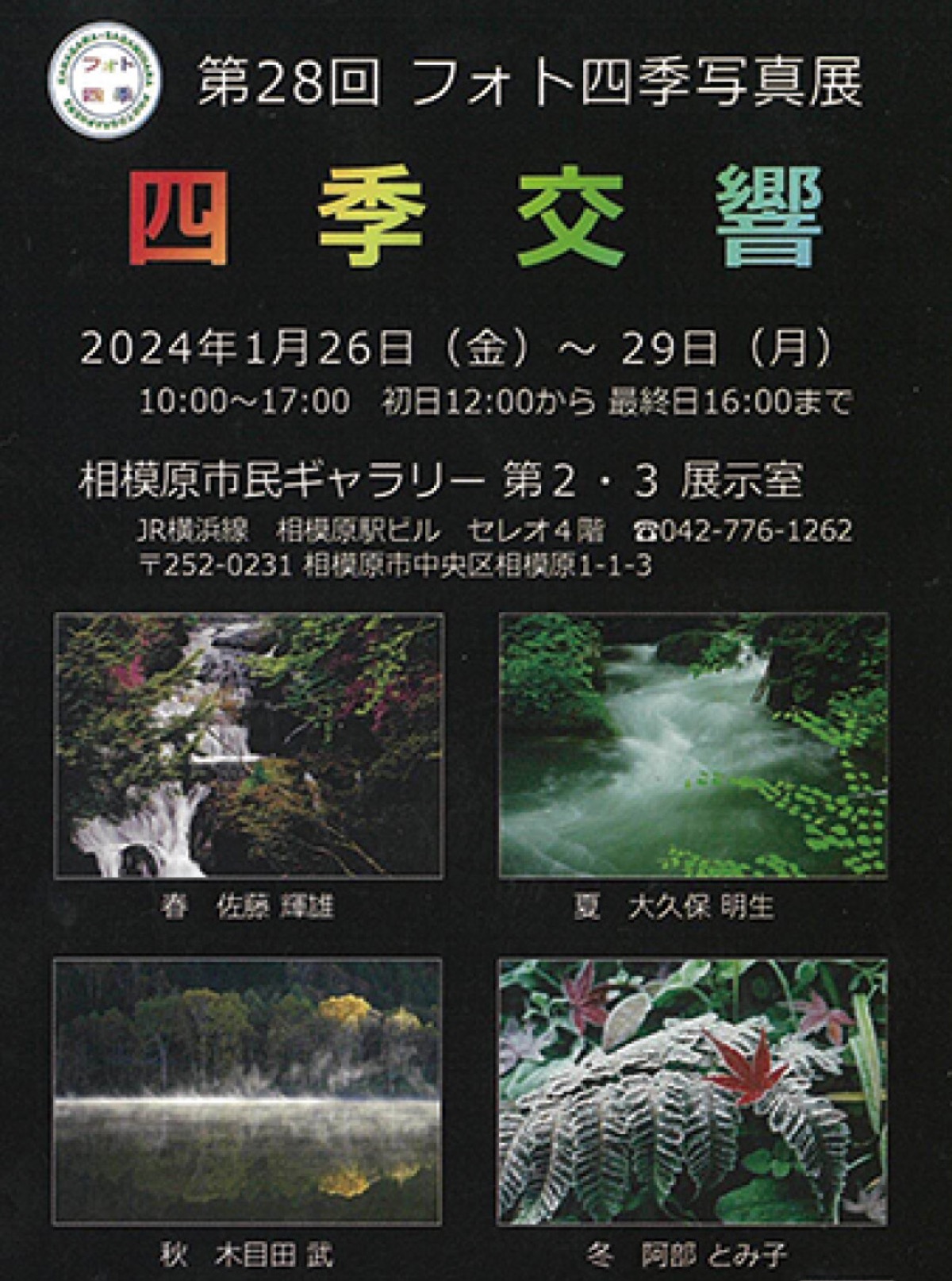 相模原市内で活動する写真サークル「フォト四季」(山口光子会長)の展覧会「四季交響」=画像=が、1月26日(金)から29日(月)まで相模原市民ギャラリー(相模原駅ビル4階)で開催される。
