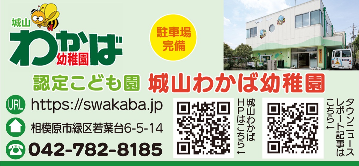 若葉台の高台にあり相模原が一望できる『城山わかば幼稚園』は四季の移り変わりが肌で感じられ、子どもも職員も笑顔いっぱい元気いっぱいな幼稚園。「保育も教育も両方受けられる認定こども園です。働いていても幼稚園教育が受けられます。入園先で悩まれている方、ご相談ください」と中山和枝園長は話す。