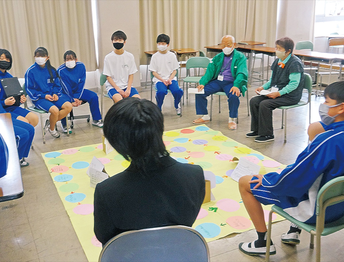 交流を通して生徒は「どうすれば高齢者でも楽しめるかを考え、相手に配慮することを学んだ」という。参加した生徒は「緊張したけど、楽しかった」と話し、高齢者は「普段は中学生と接することがないからうれしかった。ぜひまた開催してほしい」と感想を述べていた。