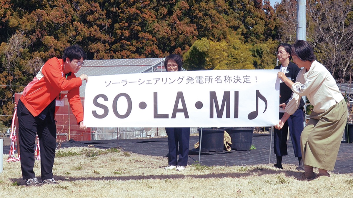 竣工式では施設の名称が「SO・LA・MI」(ソラミ)に決定したことが発表された。「空」「ソーラー」「実り」の3つの意味が込められている。発電所の完成にさがみこファームの山川勇一郎代表は「多くの方の協力があって実現できた。ソーラーシェアリングは地域の課題解決や地域活性化の大きな可能性を持っている。社会から見たら小さな一歩かもしれないが、この事業を大きく育てていきたい」と語ると、4年後のブドウの収穫に思いを寄せ「ワインで乾杯しながら祝福する日を夢見ている」とあいさつ。生活クラブ生協神奈川の半澤彰浩専務理事は「大変夢のある取り組みで、スタートを迎えられて良かった。再エネは地域社会、地域づくり、地域循環を作っていく道具としても位置づけていくことが大事。そういう意味でも相模原市、神奈川県と連携していろいろな取り組みのモデルになれば」と期待した。