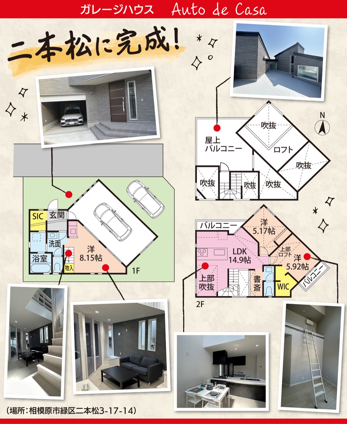 地元工務店・梅澤木材(株)(緑区二本松)が手掛けた二本松の新築戸建て住宅がこのほど完成した。この住宅は同社が提案するガレージハウス「Auto de Casa」で建てられた一棟。車やバイク、自転車好きのために生まれたこの住宅のコンセプトは『愛車と暮らす家』。建物にガレージを組み込み、雨風から愛車を守るだけでなく室内から愛車を眺められ、愛好家にはたまらない設計になっている。屋上のテラスやロフト、モダンな外観も特長だ。