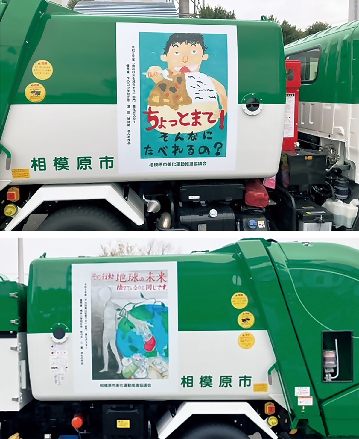 38回目の今回は「不法投棄は犯罪です」「食品ロスを減らそう」の2つのテーマで実施。計448作品の応募があった。各テーマごとに最優秀作品1点、優秀作品5点が表彰された。緑区からは津田琥汰郎さん(作の口小2年 ※応募時)と、佐々木心美さん(橋本小6年 ※応募時)の作品が優秀賞に選ばれ、収集車に貼られている。