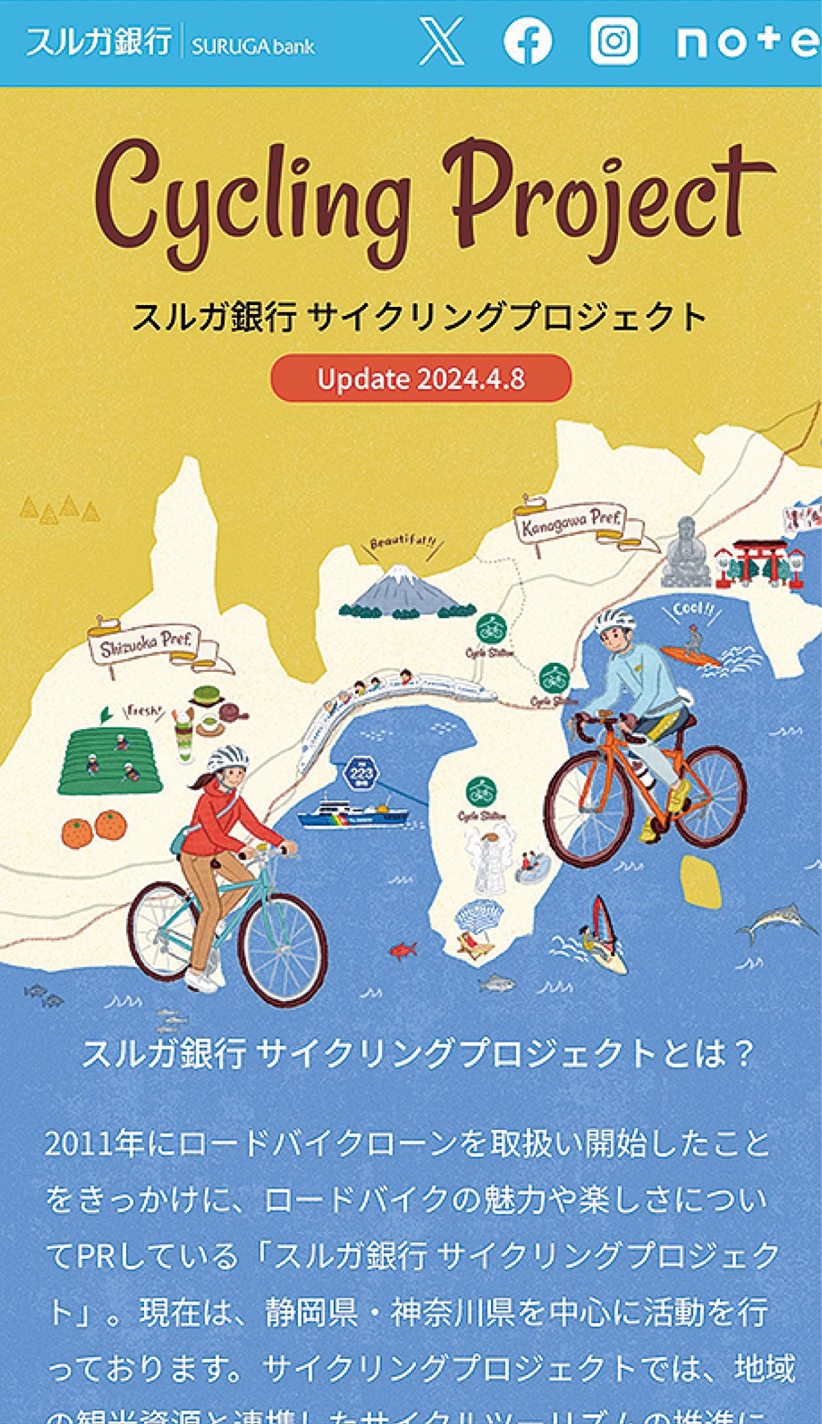 今回の相模原市との協定で実施されるシティプロモーションの取組ではSNSを活用して市内の6つのモデルコースを紹介する。相模原ならではの風景を交えて自転車だからこそ立ち寄れるスポットや地域のおすすめ店などを紹介し、地元の飲食業やサービス業のPRにもつなげる。発信した内容はスルガ銀行のWeb記事にまとめ、SNSで継続的に拡散していくという。
