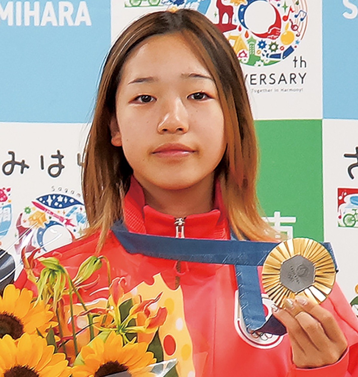 パリオリンピックのスケートボード女子ストリートで金メダルを獲得した吉沢恋(ここ)選手が8月3日、本村賢太郎市長と面会し、晴れ舞台での活躍を報告した。14歳らしい素顔を覗かせながらも次の目標を「連覇」と断言。市長に「市内に屋内型の専用パークを整備してほしい」とお願いする場面もあった。
