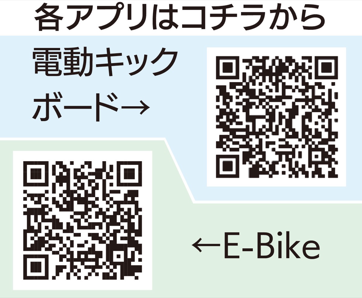 電動キックボードは16歳以上が対象で利用料は15分250円。E-Bikeは年齢制限は無いが、身長159〜178cmの人が推奨とされる。利用料は30分300円となる。どちらも自動車運転免許は不要。各ステーションではヘルメットの貸し出しも行っている。