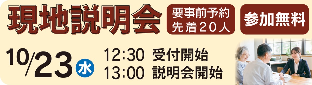 10月23日(水)には「現地説明会」を開催(下記画像参照)。紅葉狩りも兼ねて気軽に訪れてみては。