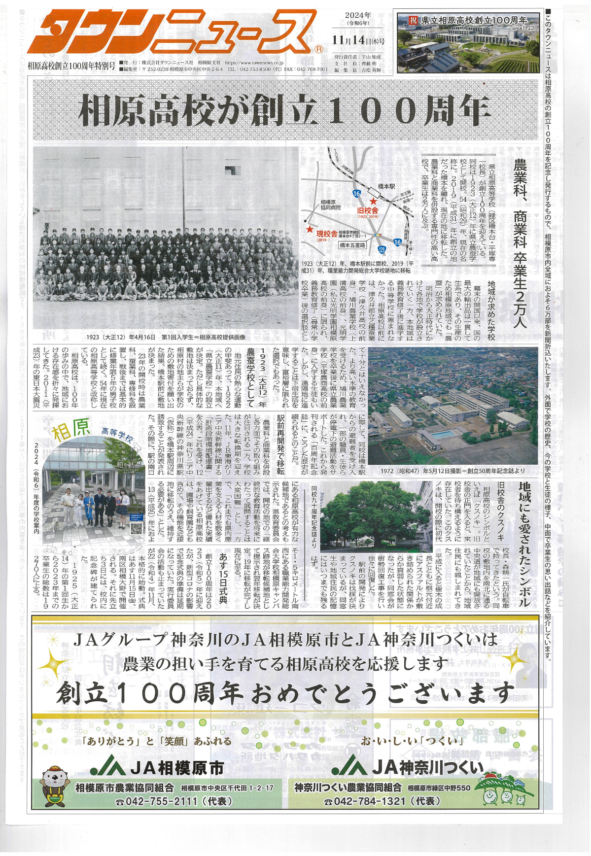 タウンニュース相原高校創立100周年特別号を11月14日に発行しました。