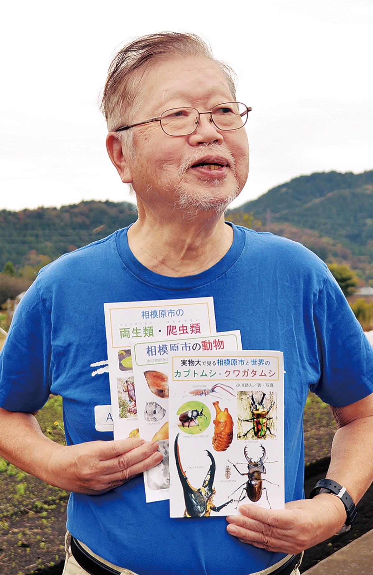 小川さんは、大手出版社で長年、編集者を務めた経験を生かし、撮影から執筆、編集校正まで全てを自分で手掛ける。これまでに、「相模原・津久井の動物」(改訂新版「相模原市の動物」)、「相模原市の両生類・爬虫類」を刊行しており、「これで手作り図鑑、相模原3部作の完成だな」と笑顔を見せる。
