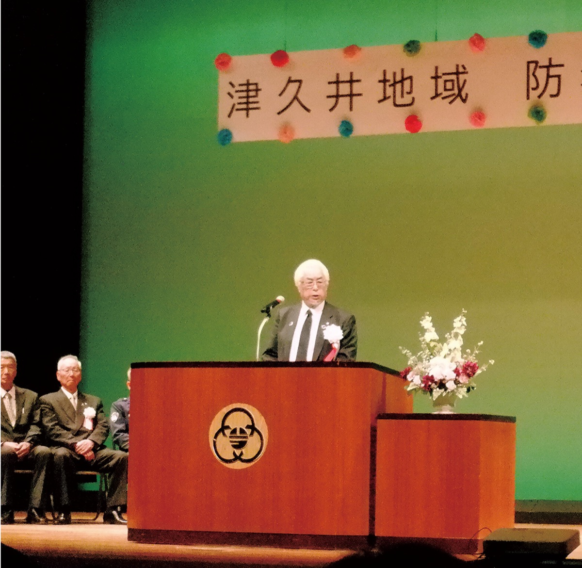 式典では津久井防犯協会の山下利麿会長があいさつ。「特殊詐欺が発生しており、犯罪のない安全安心のまちづくりのために、各団体の皆さんが『私たちは詐欺にはだまされません』のスローガンのもとで、地域の見守り活動や啓発活動に取り組み犯罪抑止に努めている。皆さんにもご理解いただき、ご支援ご協力をお願いします」と呼び掛けた。