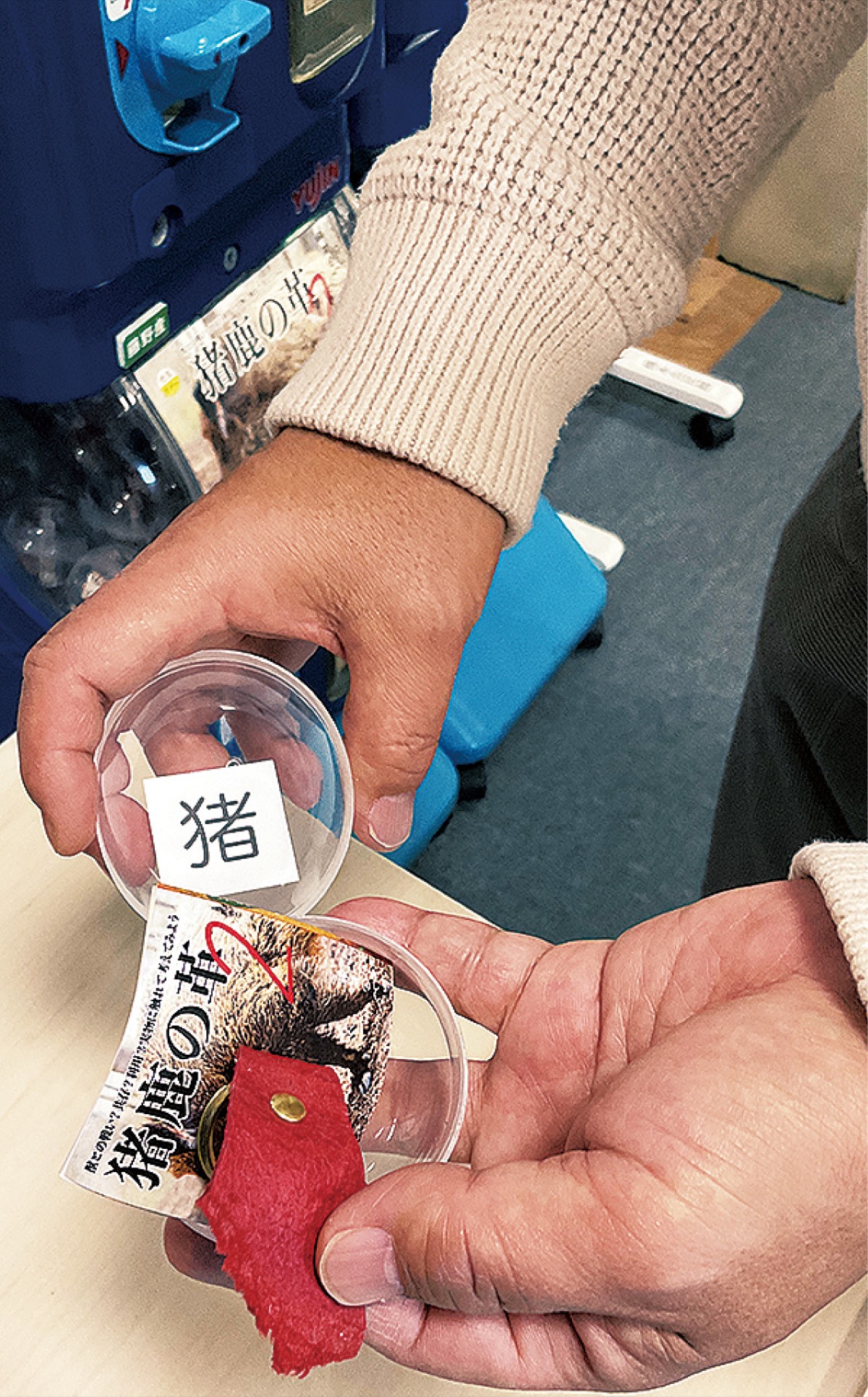 販売価格は300円、1つのカプセルに猪か鹿の端材キーホルダーが1つ入っている。篠原の里や橋本公民館ほかで購入可能。詳細は『地産ガチャ』ウェブサイト(https://www.chisangacha.com/)で。