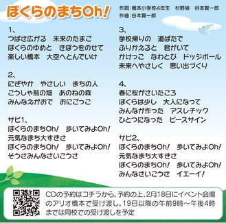 橋本小学校(佐藤美佳校長)の4年生が「橋本を有名にしたい」という思いで制作した歌『ぼくらのまちOh!』のCDが2月18日(火)に販売されることが決まった。販売に先駆け同校では予約を受け付けている。