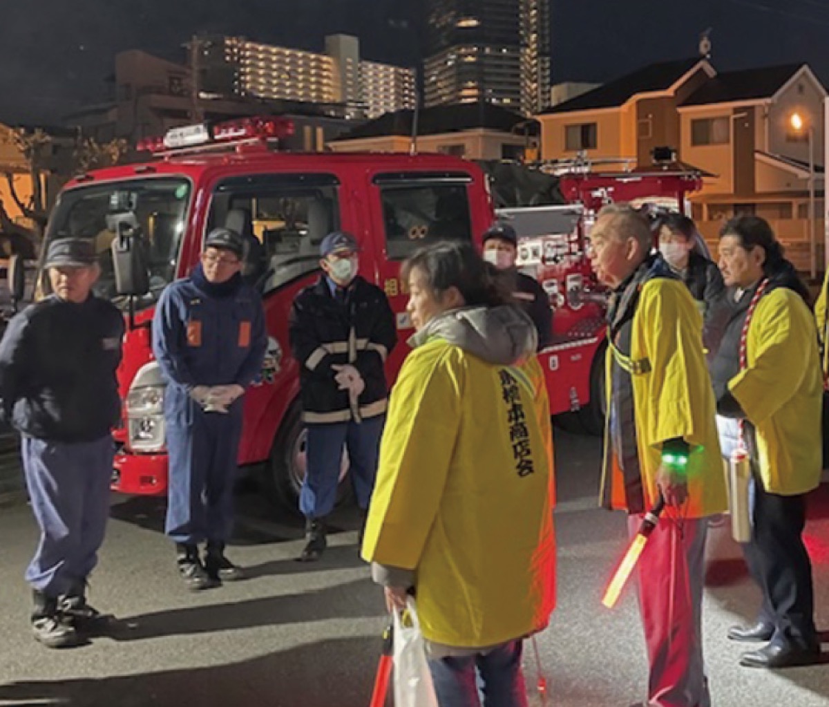 東橋本地域で12月26日、東橋本商店会主動による「一斉火の用心パトロール」が実施された。同商店会のほか、東橋本第一自治会、東橋本第二自治会、東橋本南自治会、橋本・めぐり報、橋本消防団の6団体約20人が参加。地域を夜回りし、火の用心と防犯への注意喚起を行った。