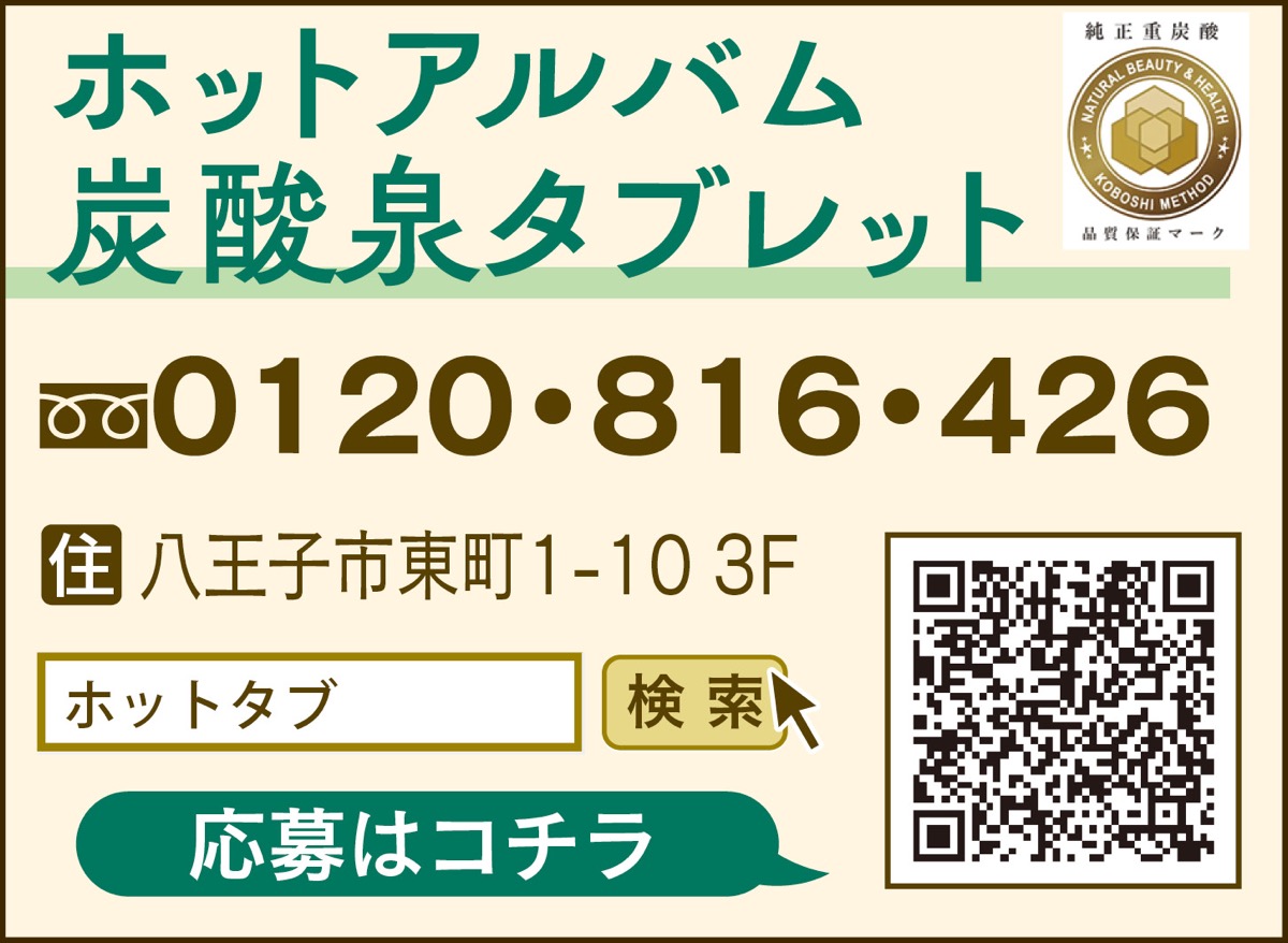 ◆プレゼント応募方法/【1】【ハガキ】郵便番号、住所、連絡先、氏名、年齢、性別を明記の上、〒160―0023新宿区西新宿6丁目12の1パークウエストビル7階(株)ホットアルバム炭酸泉タブレット「書籍プレゼント」係へ。【2】【電話】枠内の連絡先へ。【3】【LINE】枠内の二次元コードを読み込む。締切は2月28日(金)必着。なお同社では個人情報の扱いについて「商品の発送、感想を聞く際に使用」としている。