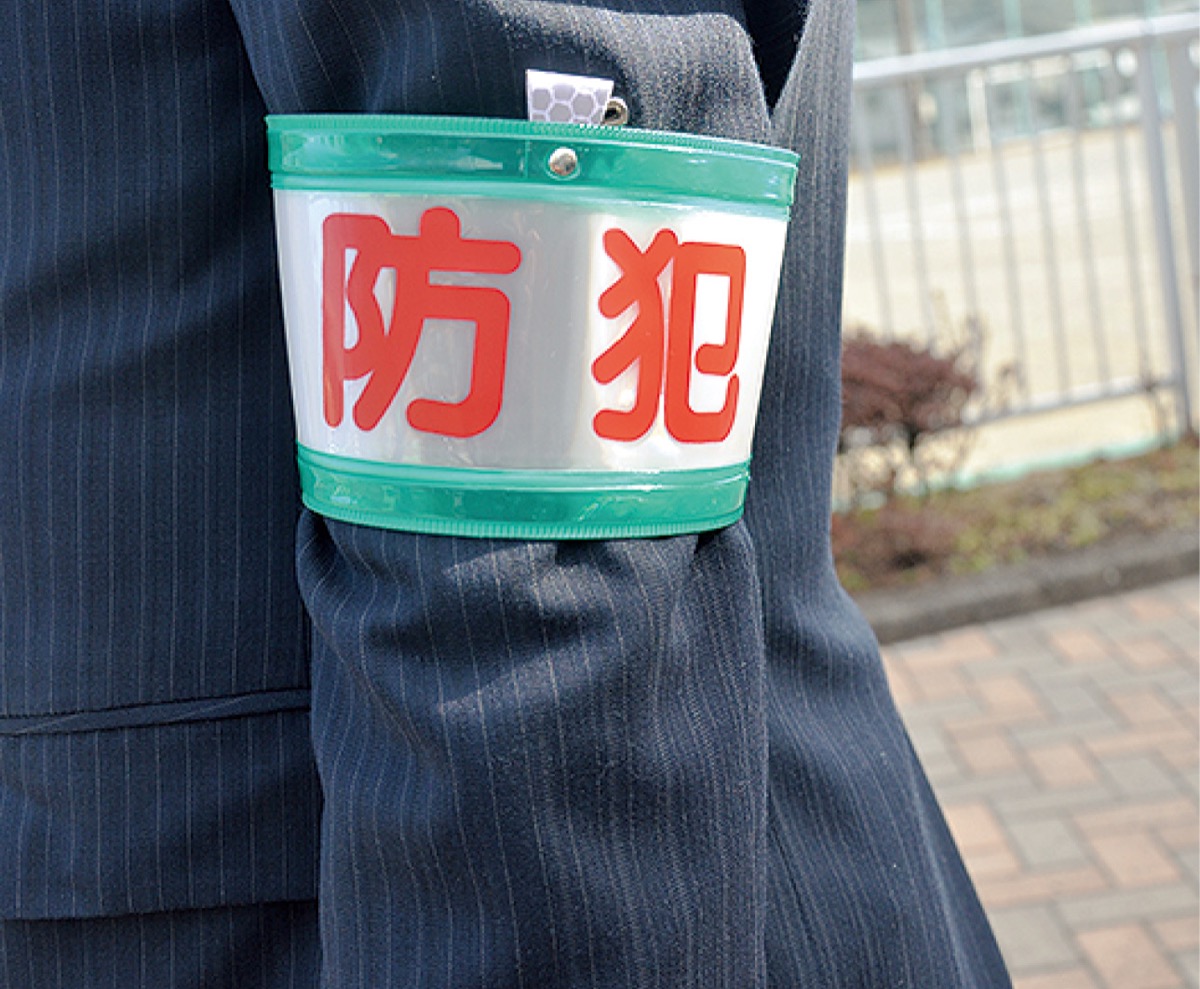 出発式では、津久井防犯協会から同隊に「防犯」と記された腕章が寄贈された。防犯協会の山下利麿会長は「これからリニアの車両基地ができ、鳥屋にはいろいろな人が集まってくる。事件や事故があるかもしれない。何かあったらすぐに助けを呼んでほしい」と学園生に呼び掛けた。