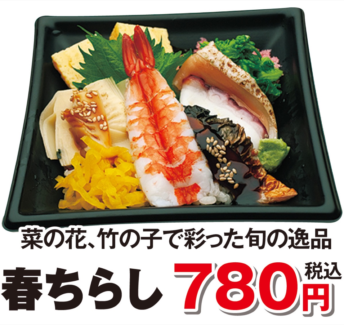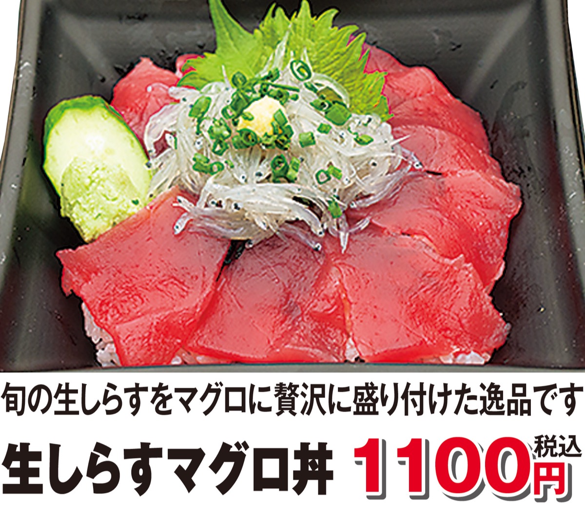 旬の生しらすを贅沢に盛り付けた「生しらすマグロ丼(税込1100円)」、菜の花と竹の子が食欲をそそる季節限定の「春ちらし(税込780円)」も見逃せない。