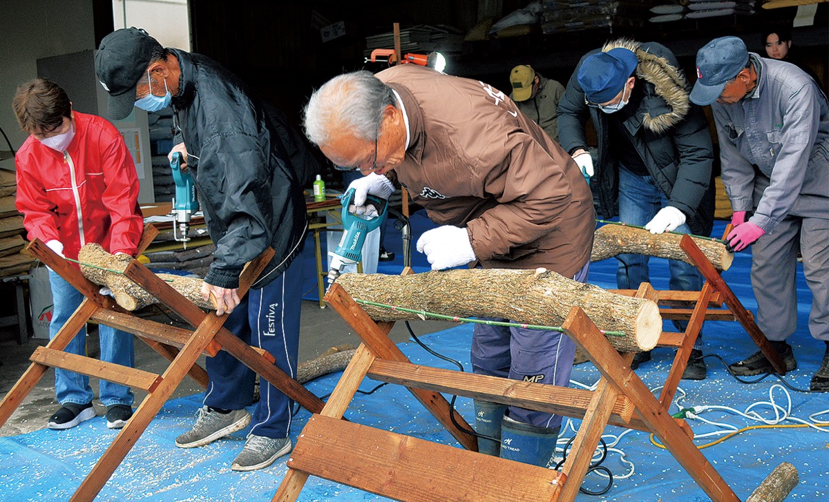 JA神奈川つくい農畜産物直売所あぐりんずつくい(中野)で3月29日、原木シイタケの植菌体験が開催され、約50人が参加した。